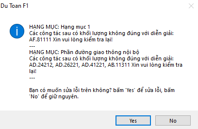 Nhấn Yes nếu muốn tính lại số liệu để kiểm tra