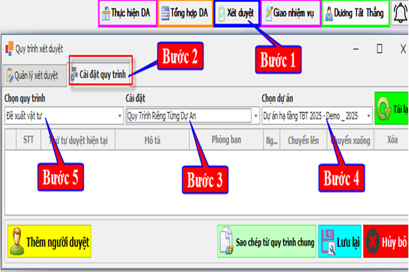 Cài đặt quy trình duyệt theo dự án