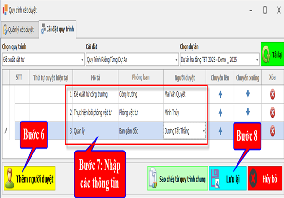 Bước 7: Nhập các thông tin chi tiết cho từng Bước duyệt