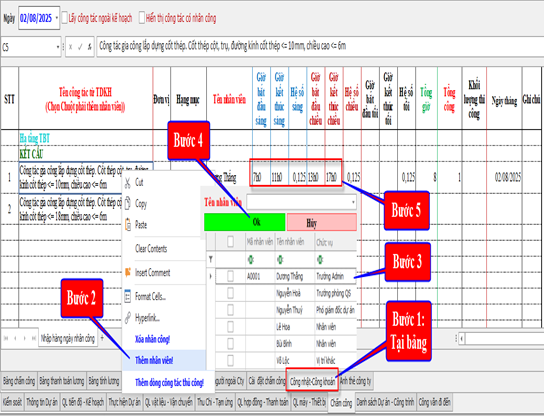 Hướng dẫn Nhân sự chấm công lương Trên phần mềm Quản lý thi công 360