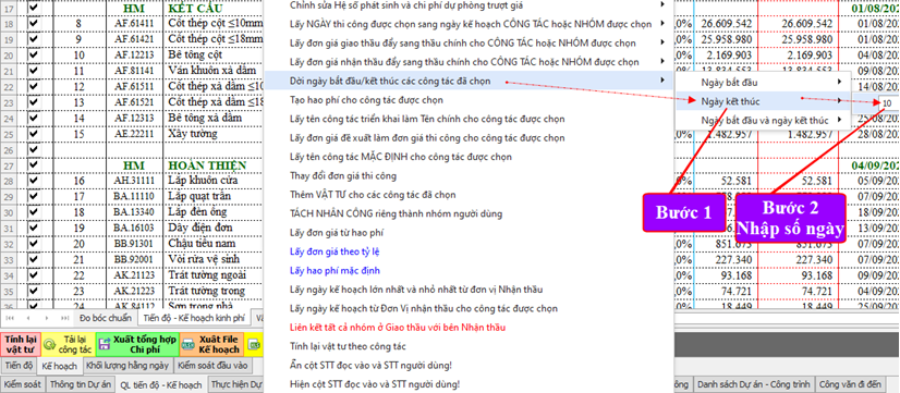 Hướng dẫn Chọn thầu nhập ngày điều chỉnh công tác Trên phần mềm Quản lý thi công 360