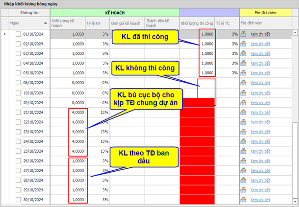 • Nhấn nút "Nhập kế hoạch" để xác nhận và hệ thống sẽ phân bổ khối lượng theo ngày.