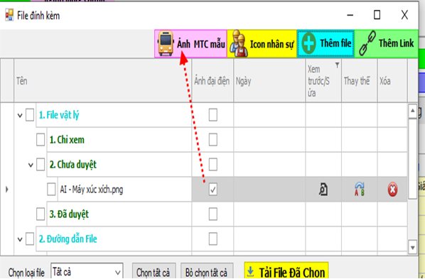 Hệ thống sẽ mở ra bảng chi tiết để bạn chọn ảnh đại diện cho máy và đánh dấu vào cột “Ảnh đại diện” sau khi lấy ảnh vào để hiển thị ra ngoài.