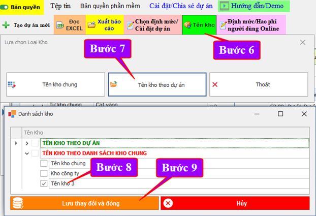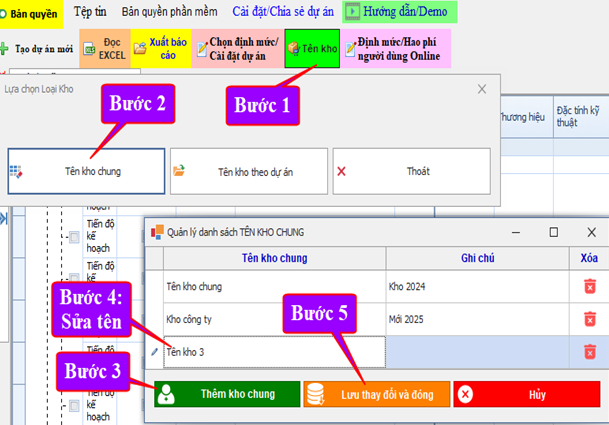- Tạo kho chung công ty trước khi chuyển vật liệu về kho chung này để lưu kho hoặc xuất đi các công trình dự án khác.
