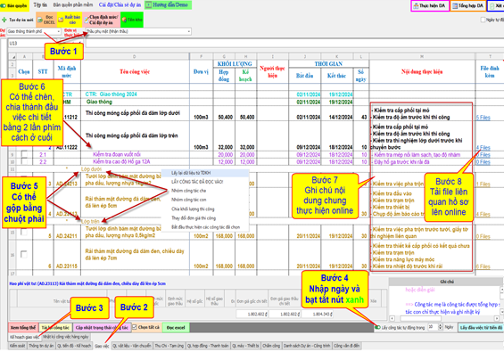 Hệ thống sẽ tự động thêm dòng con để bạn điền rõ từng phần việc cụ thể.