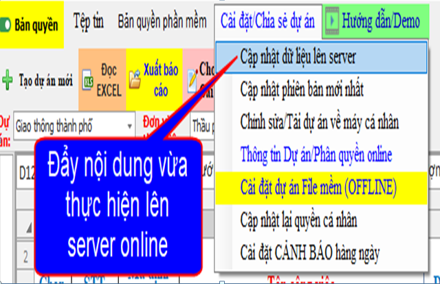 Sau khi thao tác các nội dung liên quan xong bạn cần cập nhật nội dung này lên server online để tất cả mọi người liên quan dự án có thể xem để cùng trao đổi và báo cáo thực hiện
